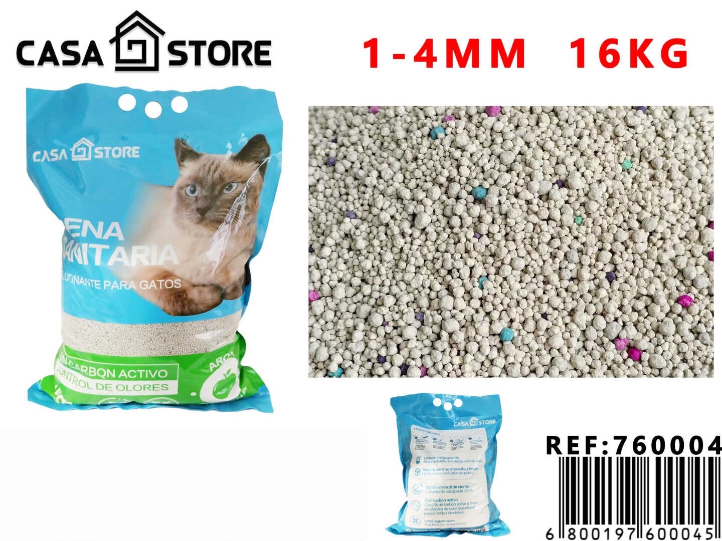 La arena mineral de carbón activado tiene una fuerte capacidad de adsorción y retiene los olores instantáneamente.